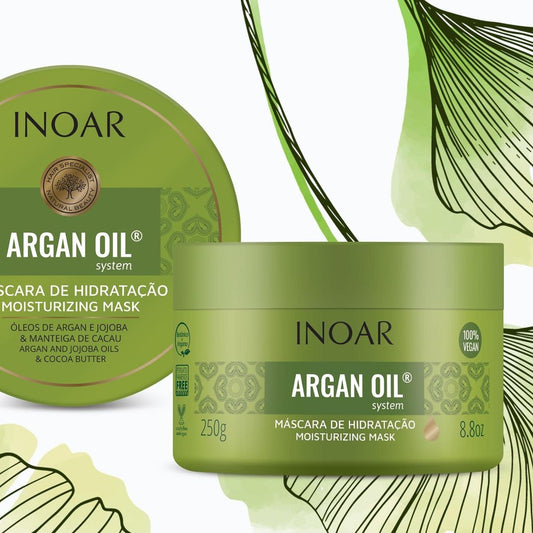 Inoar Argan Oil System Kit - Shampoo, Conditioner, Leave-in and Hair Mask
