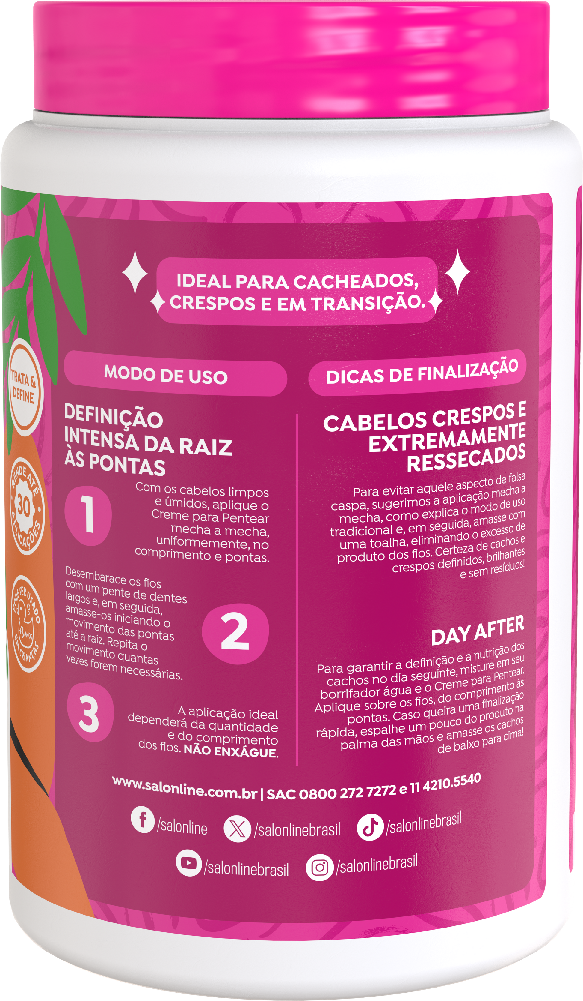Unleash the power of intense curl definition with the Salon Line Intense Definition Styling Cream! In a generous 1kg package, this cream offers remarkable curl definition, shine, detangling, frizz control, and deep hydration. Each application delivers outstanding results with a conditioning action that leaves your curls defined and nourished. With up to 30 applications per package, your curls will stay perfect for a long time. More than just a styling cream, it's the ultimate choice for those seeking intense definition and complete hair care.